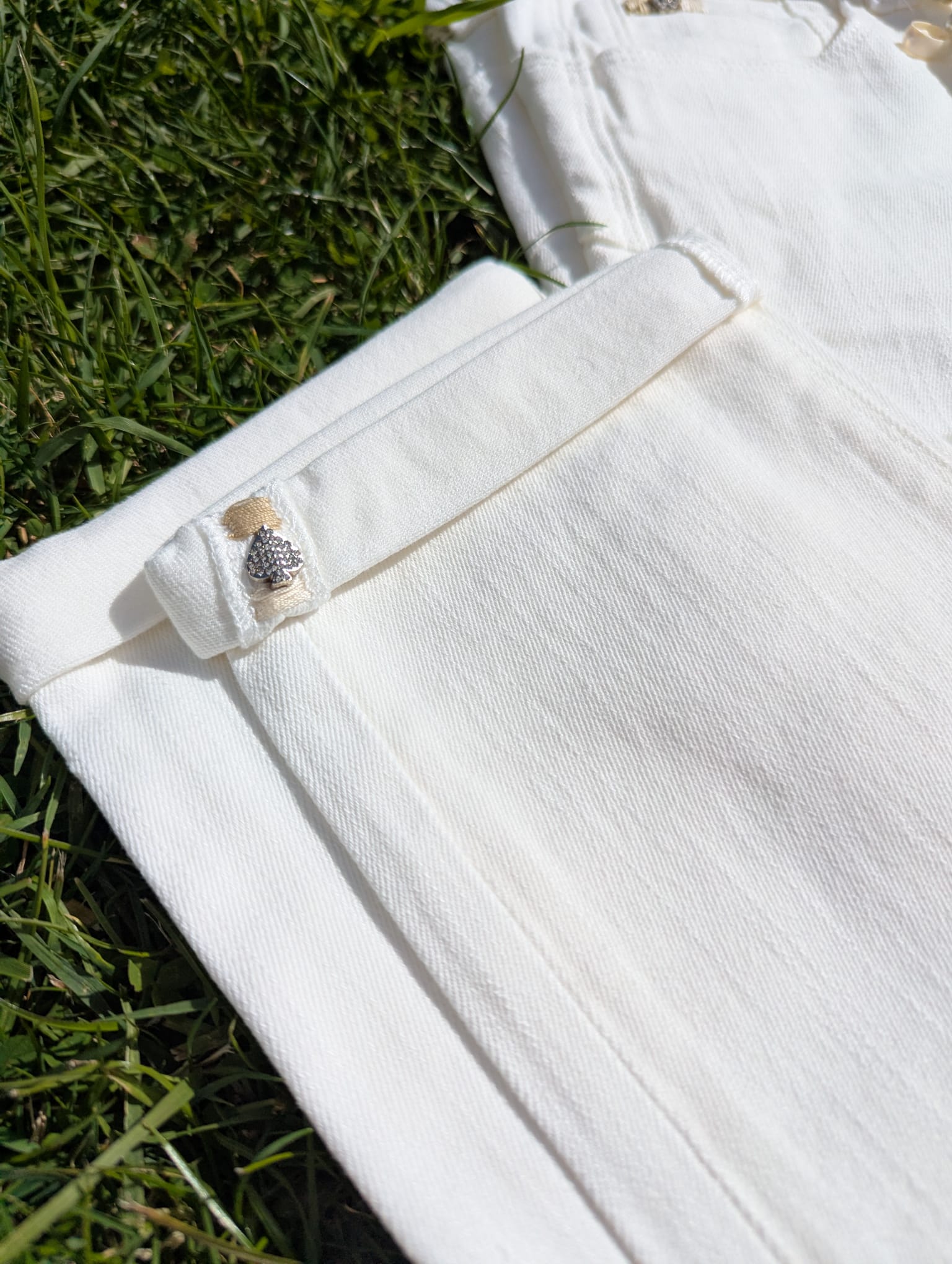 Revers dans le bas du pantalon avec un petit cœur brillant, très discret qui fait toute la différence.